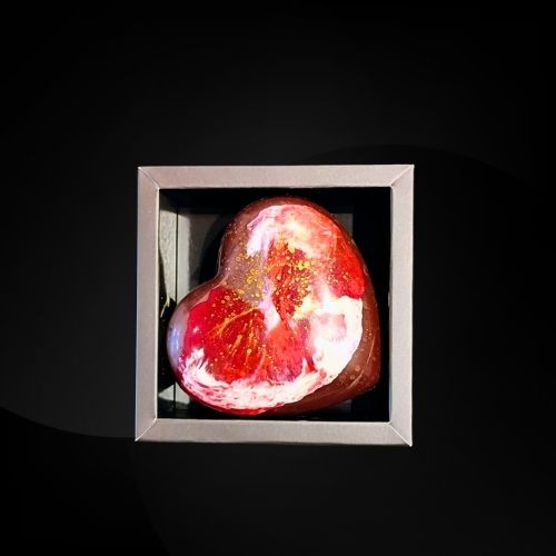 Cœur en chocolat noir ou lait, garni de mini cœurs.