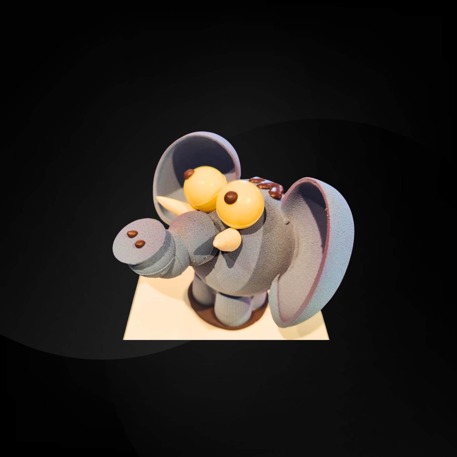 Éléphant en chocolat au lait ou noir, entièrement façonné à la main avec minutie.