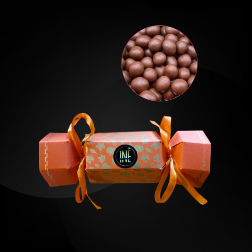 – Noisettes enrobées de chocolat au lait, pour une douceur fondante et réconfortante.
