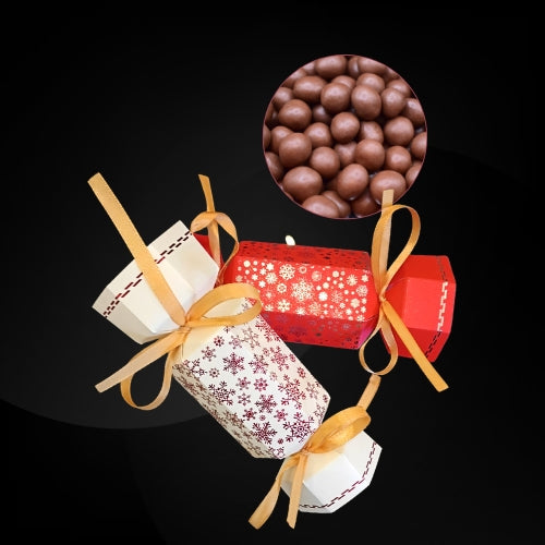 – Noisettes enrobées de chocolat au lait, pour une douceur fondante et réconfortante.