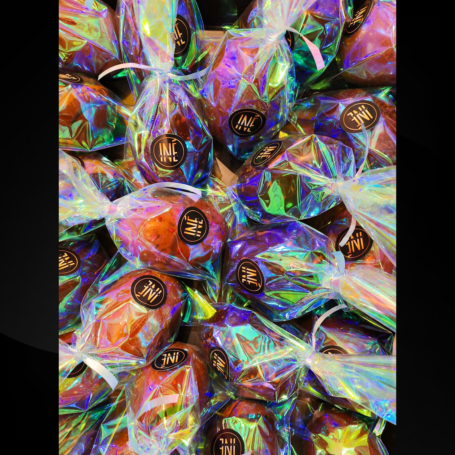 Œuf en chocolat au lait ou noir, garni avec soin d’un assortiment de chocolats pralinés et de textures craquantes, pensé pour offrir une expérience gourmande et raffinée.