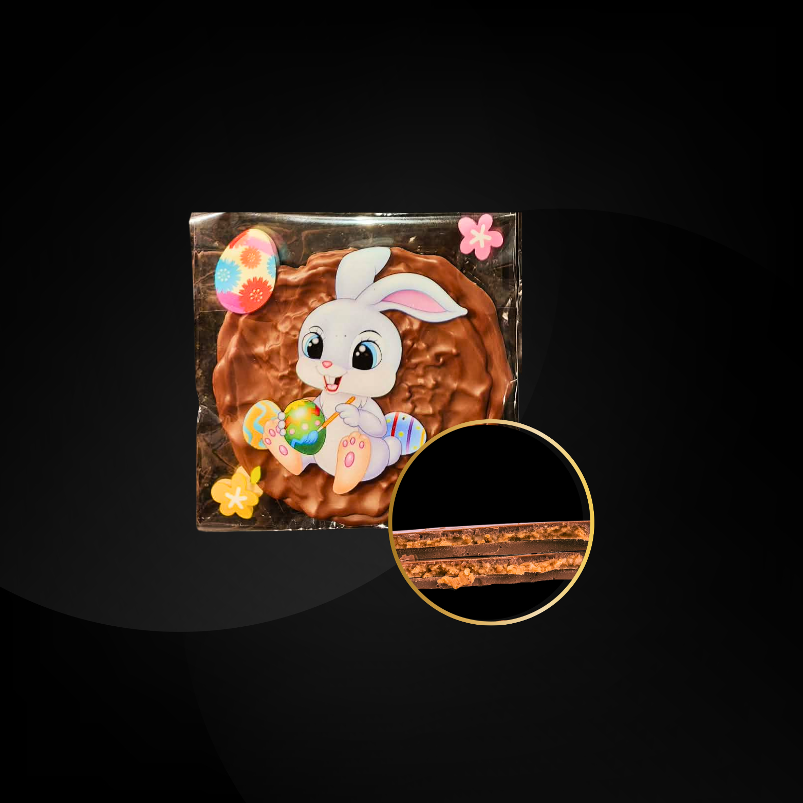 Splash en chocolat au lait, renfermant un fondant praliné amande-noisette aux notes délicatement gourmandes.