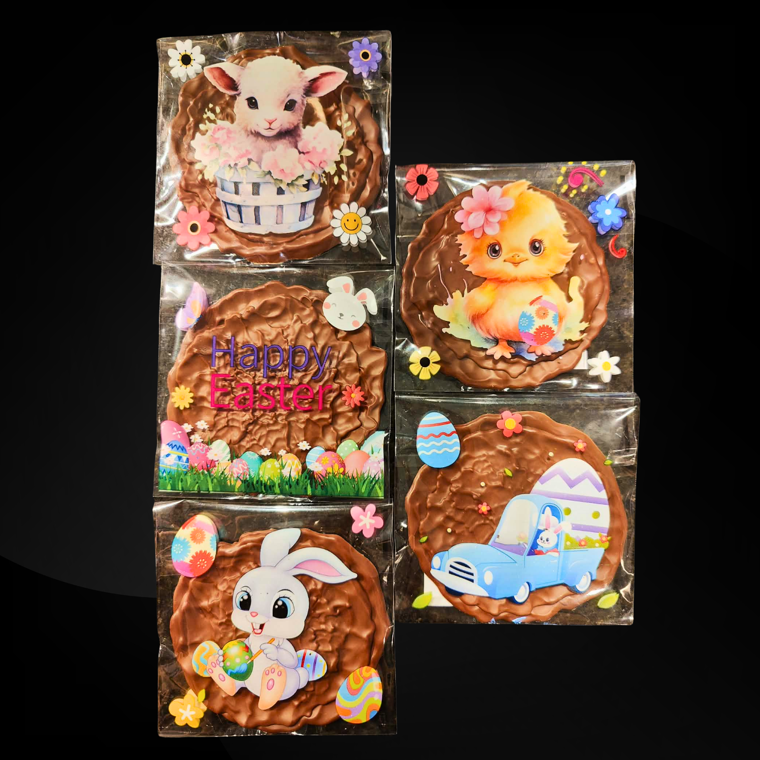 Ingrédients : chocolat au lait (sucre, beurre de cacao, lait en poudre, fèves de cacao, lécithines, vanille), noisettes, amandes, sucre. Contient : noisettes, amandes, lait, soja. Traces possibles: arachides, noix, sésame, blé, œufs, lait.